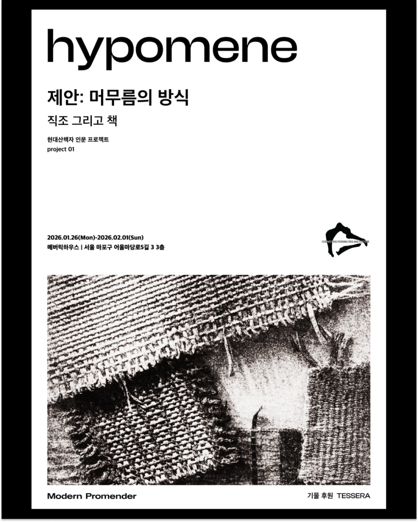 즉각성과 효율이 기준이 된 시대,우리는 머무르는 법을 잃어버린 것 같습니다.잠시 멈추고, 느끼고, 사색하는 것.그것이 어쩌면 가장 인간적인 행위가 아닐까요.마포구 서교동에 위치한 메버릭 하우스에서 현대산책자는 그 가장 인간적인 행위를 제안합니다.손으로 직조한 직물을 직접 고르고, 커피와 디저트를 음미하며한 권의 책에 머무는 시간을 마련했습니다.작가 유은의 자연의 재료로 직조한 직물의 감촉을 느끼고,커피 한 잔의 섬세한 맛과 판나코타의 달콤함을 천천히 음미하며,현대산책자 팀이 선정한 책들 속에서글과 그 행간에 머무는 시간이 되길 바랍니다.